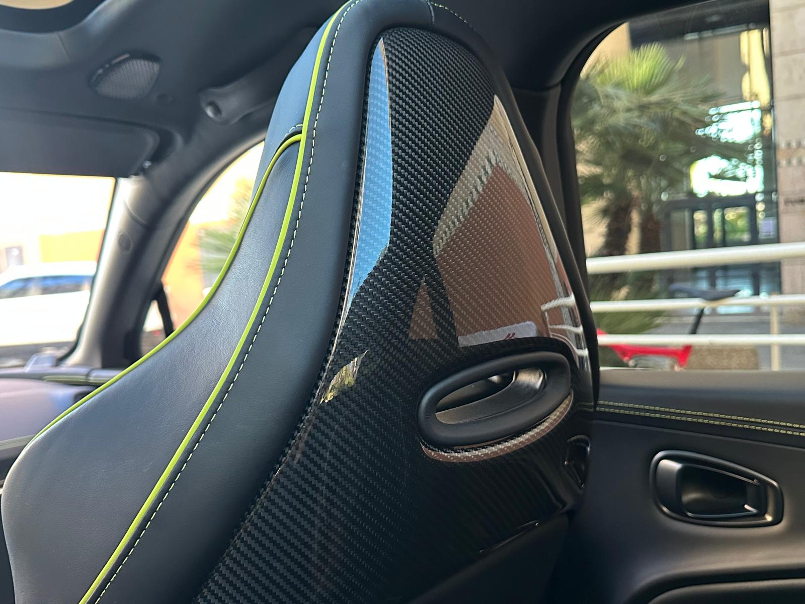 Intérieur : Cuir noir / surpiqûres lime / Alcantara / Détails intérieur carbone