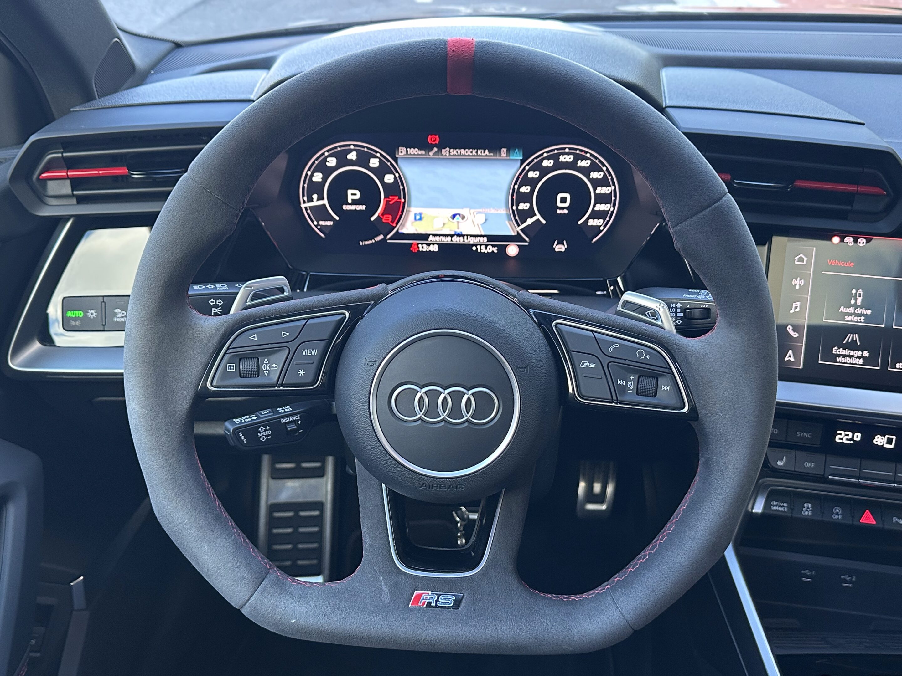 Volant cuir Sport multifonctions Plus 3 branches avec méplat et palettes de commande au volant